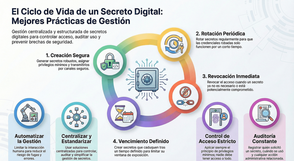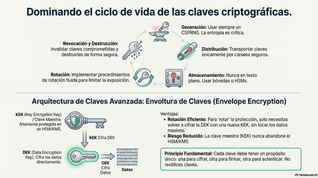 • Rotación automática de claves (cada 60–90 días).