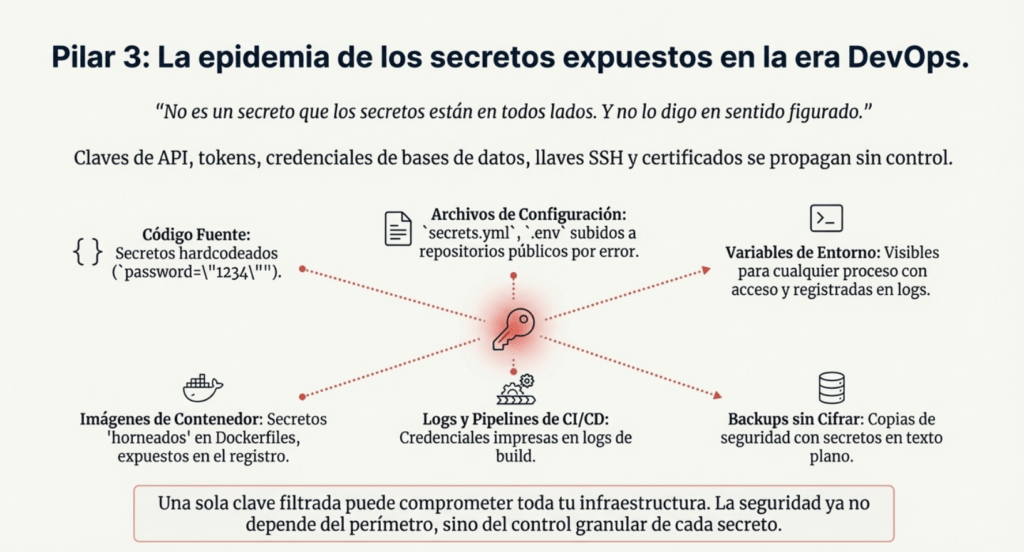 Los secretos, además, se siguen gestionando como si estuviéramos en 2005. Aparecen en .env, en logs, en pipelines, en backups sin cifrar, en registros que terminan en Pastebin. Nadie rota claves, nadie valida accesos, nadie monitorea cuándo y desde dónde se accede a los secretos. Y después se sorprenden cuando alguien accede a producción con una clave vieja encontrada en un repo viejo. Vault, KMS, Hashicorp, AWS Secrets Manager, da igual cuál uses. El tema es usar algo. No dejarlo librado al azar.