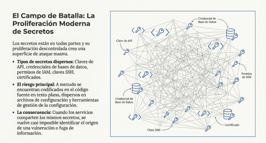 Uno de los factores principales que explica el peso de esta categoría en 2025 es la explosión del uso de APIs, microservicios, autenticación federada (OAuth, OpenID Connect), tokens JWT y servicios serverless. En estos entornos, la criptografía no es simplemente “un componente”, sino la columna vertebral del modelo de seguridad. Un JWT mal firmado, una clave HS256 compartida públicamente, un certificado expirado, un algoritmo débil o una configuración errónea en un balanceador puede comprometer a toda una infraestructura. Además, la automatización masiva generada por DevOps, IaC y contenedores crea nuevos escenarios donde claves y secretos se propagan sin control: archivos .env, variables de entorno accesibles, secretos incluidos en imágenes Docker, configuraciones YAML subidas por error a GitHub. OWASP reconoce en 2025 que gran parte de los incidentes modernos se deben no al cifrado en sí, sino al mal manejo del cifrado.