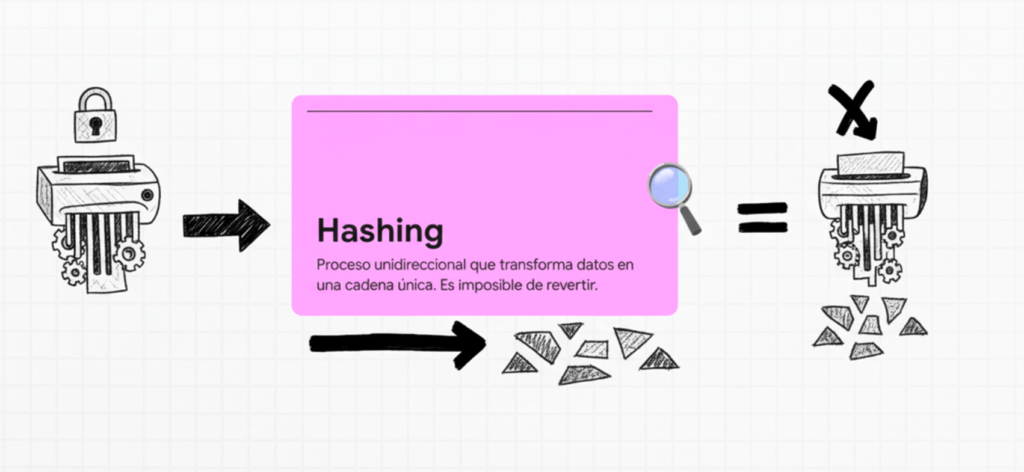 (*El hash es la transformación de los caracteres de una cadena en cadenas más cortas de longitud fija o en una clave. Para descifrar la cadena, debe estar disponible el algoritmo utilizado para formar la clave)