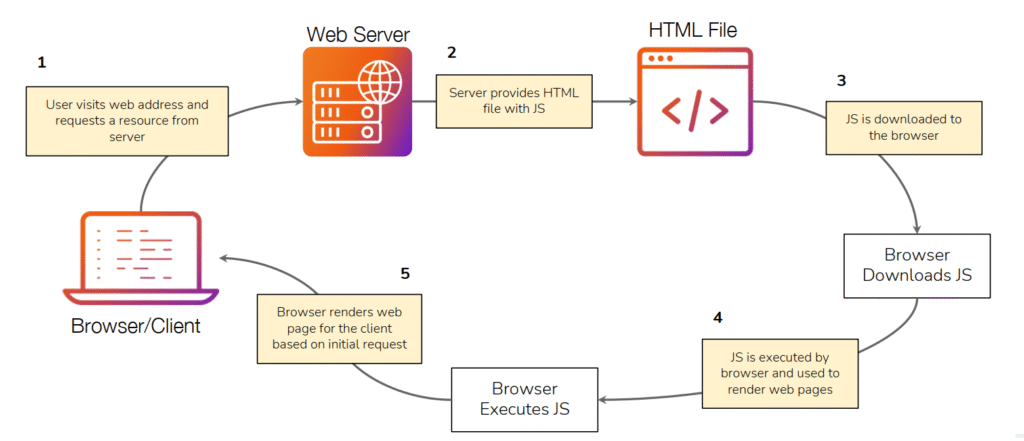 El procesamiento del lado del cliente implica la ejecución de tareas y cálculos en el dispositivo del usuario, normalmente dentro de su navegador web. El lado del cliente se refiere al extremo del usuario de la aplicación web, donde residen el navegador web y la interfaz de usuario.