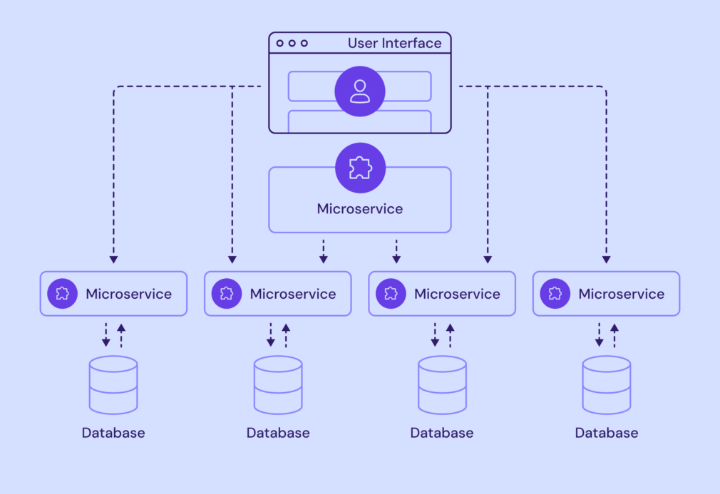 En la arquitectura de microservicios, la aplicación se divide en servicios más pequeños e independientes, cada uno con una función específica. Por ejemplo, una aplicación de banca en línea distribuye servicios como la gestión de cuentas, el procesamiento de transacciones y la atención al cliente en microservicios separados. Este enfoque permite a los desarrolladores actualizar o escalar servicios individuales sin afectar a toda la aplicación. Sin embargo, tenga en cuenta que cada microservicio suele administrar su propia base de datos, lo que puede generar problemas de integridad de los datos a medida que el sistema se vuelve más complejo.