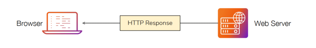 La imagen representa de manera sencilla el momento en el que un servidor web envía una respuesta HTTP (HTTP Response) al navegador. Este flujo corresponde a la segunda parte de la comunicación entre cliente y servidor: después de que el navegador envía una petición (HTTP Request), el servidor procesa la solicitud, genera la respuesta correspondiente y la devuelve al cliente.