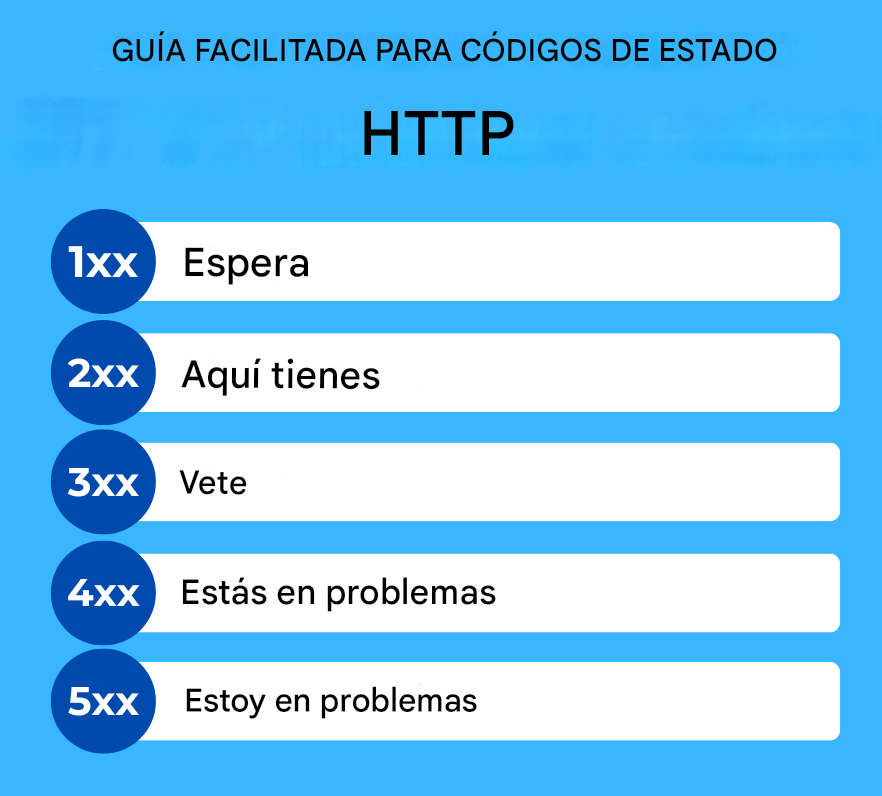 Estos códigos se denominan códigos de estado HTTP. Los servidores inundados de solicitudes suelen devolver errores 4XX o 5XX y tener demasiadas redirecciones también puede indicar problemas graves de seguridad. A partir de ahora, ya no tendrás que hacer esas búsquedas porque he preparado esta hoja de trucos sobre códigos de estado HTTP.