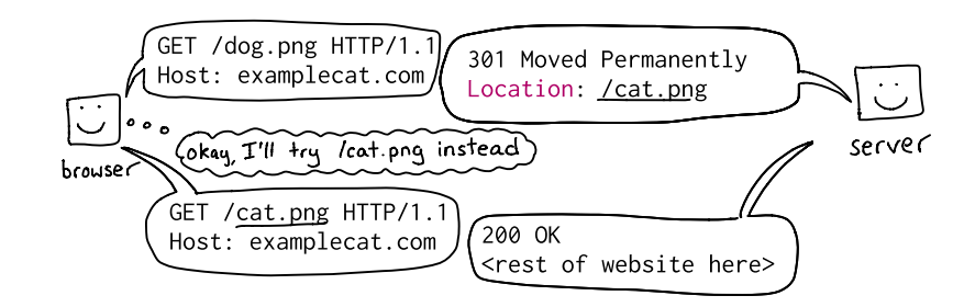 - 301: redirección permanente. El navegador la guarda.