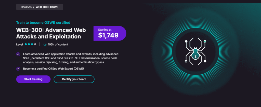 Eventualmente este curso incluirá OSWE (mi siguiente certificación a obtener en red team para completar la OSCE3), en el momento de escribir estas líneas aun no poseo esa certificación y sinceramente quiero hablar desde la experiencia tras obtenerla que desde la opinologia pura. Según la página oficial: