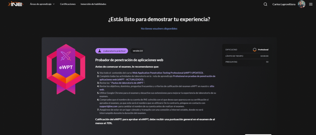 Antes que nada: NO TENGO NINGUNA RELACIÓN con INE. Ni este curso ni ninguna publicación es patrocinada de NINGUNA FORMA. Cree este curso asegurándome de que incluya todo lo necesario para poder aprobar estas certificaciones porque, ya que vas a aprender pentesting web, es ideal que estés en condiciones de poder rendirlas. Entonces este curso se creó siguiendo los lineamientos, estándares y metodología que te permitirán obtenerlas. Y no, tampoco vendo el váucher ni les puedo conseguir un descuento, recuerden: no tengo relación con INE.