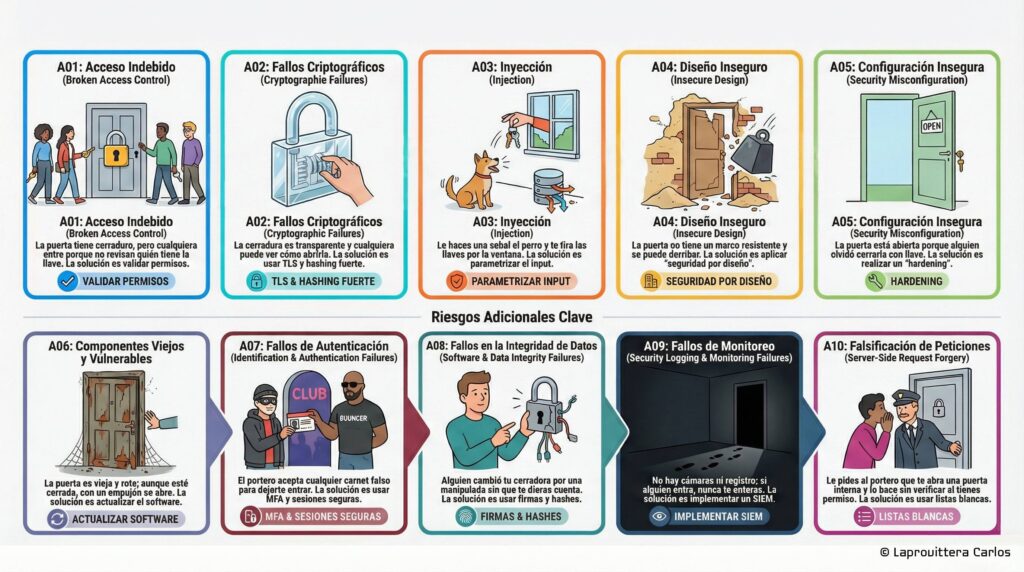 - Cómo funciona el OWASP Top 10 (2021 y 2025), su evolución y su importancia en el análisis de riesgos.