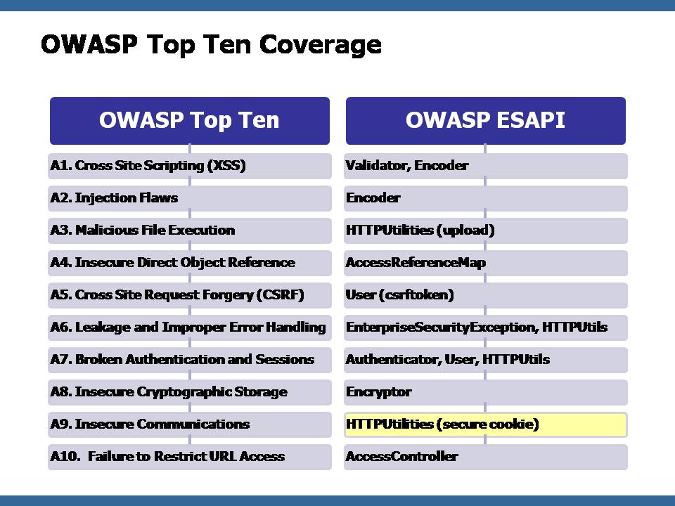 | Desarrollo | Secure Coding Practices, ESAPI |