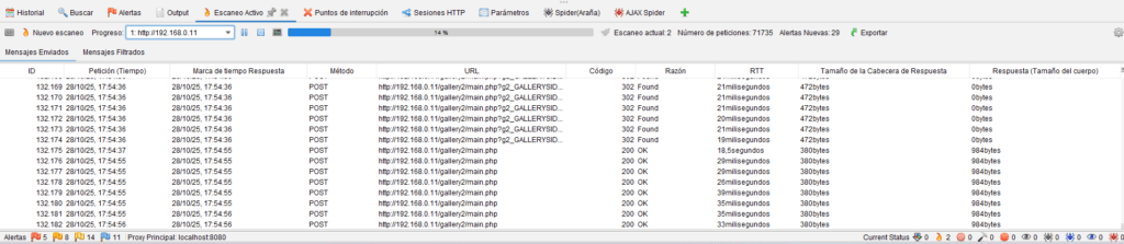 Escaneo activo y Alertas en ZAP