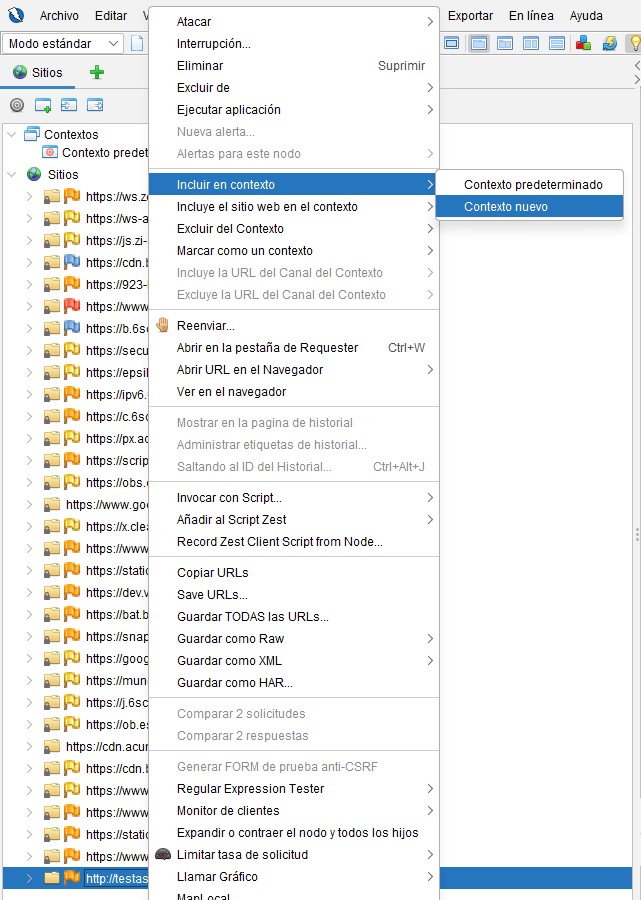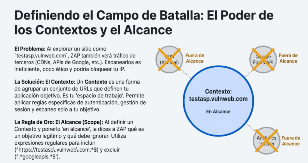 Un contexto es un conjunto de URLs agrupadas que define el alcance de una prueba. Permite: