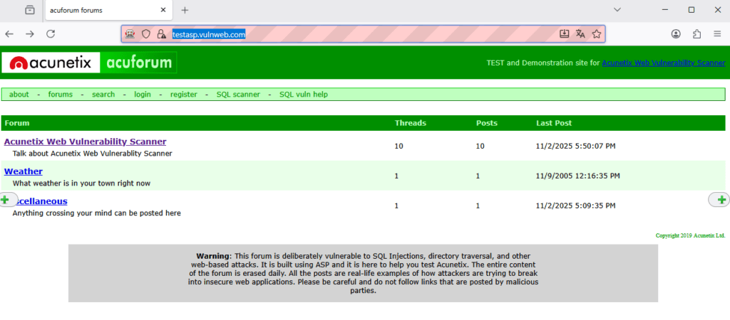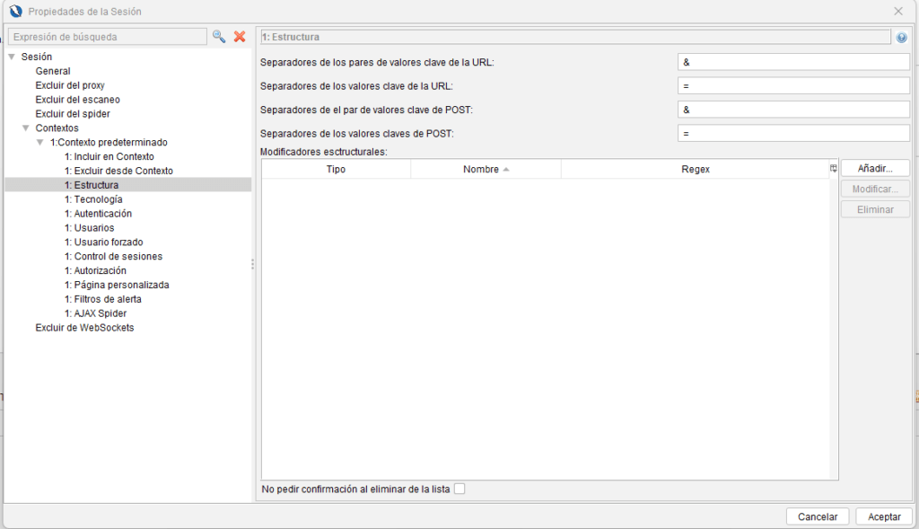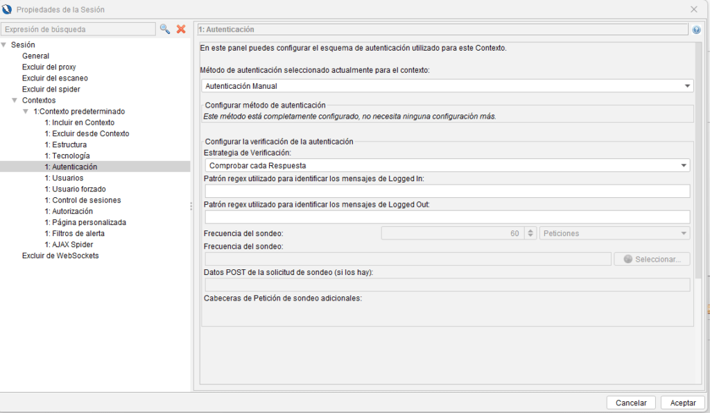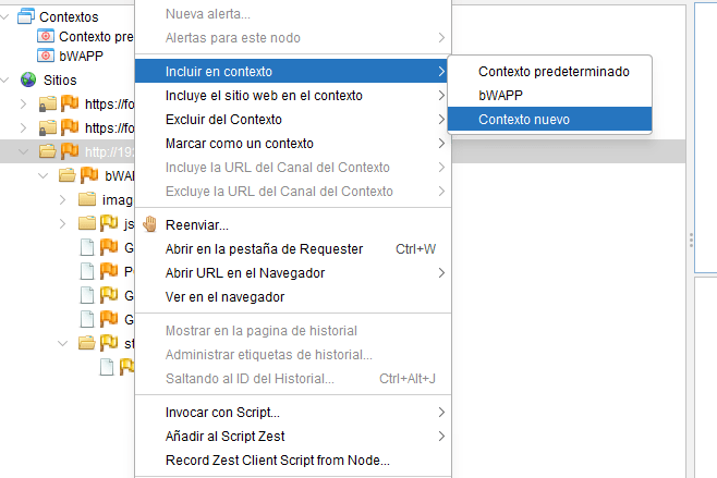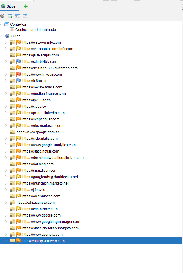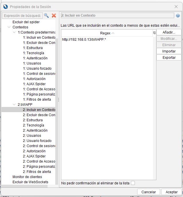 • En configuración del contexto, incluye solo ^https://testasp\.vulnweb\.com.*$
