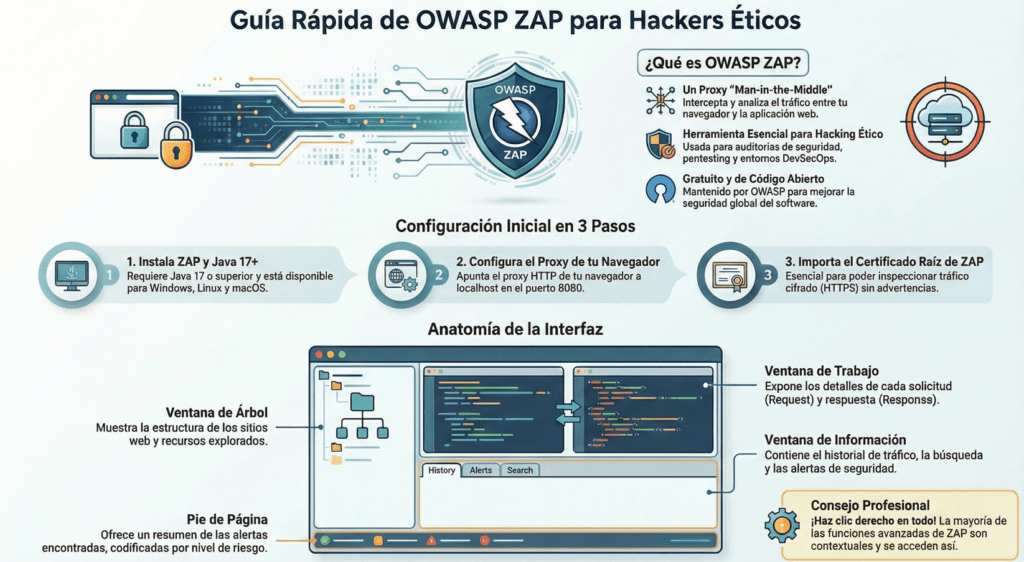 En el universo del pentesting moderno, si tu objetivo es hincarle el diente a aplicaciones web, hay una herramienta que simplemente no podés ignorar: OWASP ZAP. ZAP, abreviatura de Zed Attack Proxy, es una de las armas más versátiles y peligrosas del arsenal de cualquier hacker ético que se respete. Libre, open source, multi-plataforma, mantenida por una comunidad gigantesca y respaldada por el mismísimo OWASP. A diferencia de soluciones propietarias como Burp Suite, ZAP no solo es gratis, sino que su transparencia y flexibilidad lo hacen ideal para meter mano, automatizar pruebas y aprender a romper —y proteger— sistemas de forma sistemática.