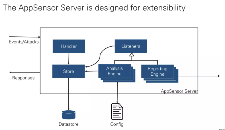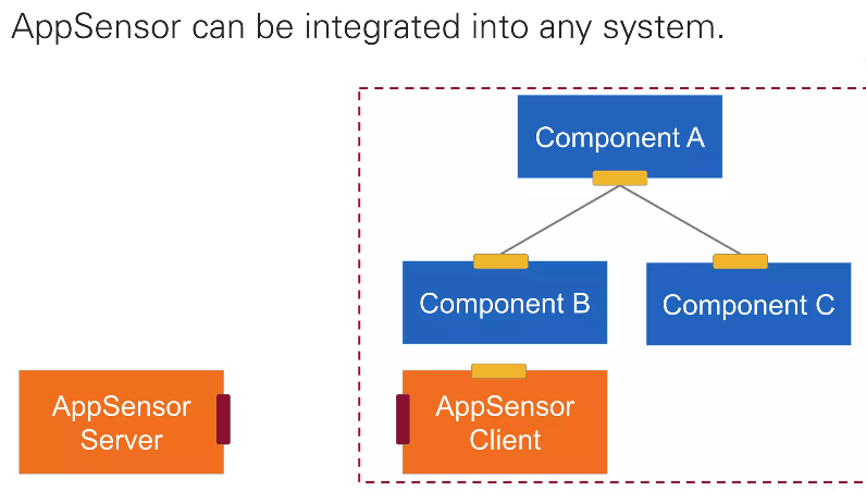 AppSensor se integra a nivel de código en apps Java, .NET o PHP, monitoreando eventos maliciosos en tiempo real (p. ej., inyecciones, fallos de login, manipulación de parámetros). Su cliente detecta eventos y los reporta a un servidor que analiza y responde automáticamente.