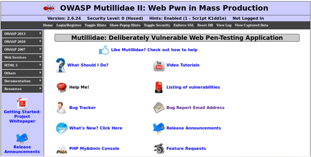Juice Shop, Mutillidae, WebGoat, bWAPP, GoatDroid, Vicnum, Security Shepherd, WrongSecrets, entre otros. Estas plataformas están diseñadas con vulnerabilidades reales para aprender hacking ético de forma segura y legal.