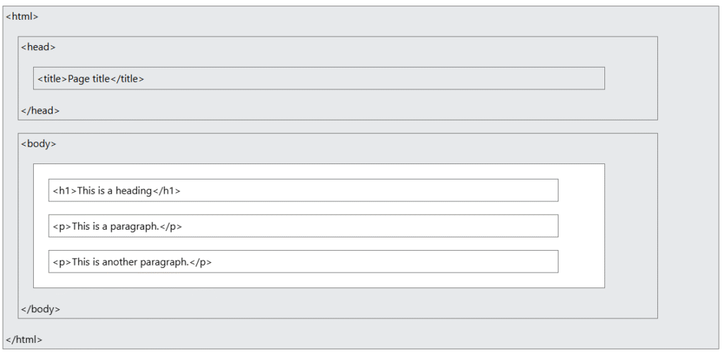 El lenguaje de marcado de hipertexto ( HTML) es el lenguaje en el que se escriben los sitios web. Los elementos (también conocidos como etiquetas) son los componentes básicos de las páginas HTML e indican al navegador cómo mostrar el contenido. El siguiente fragmento de código muestra un documento HTML simple, cuya estructura es la misma para todos los sitios web: