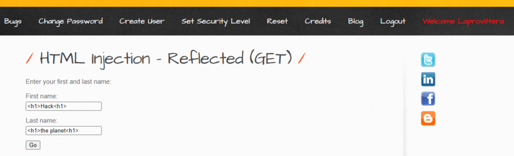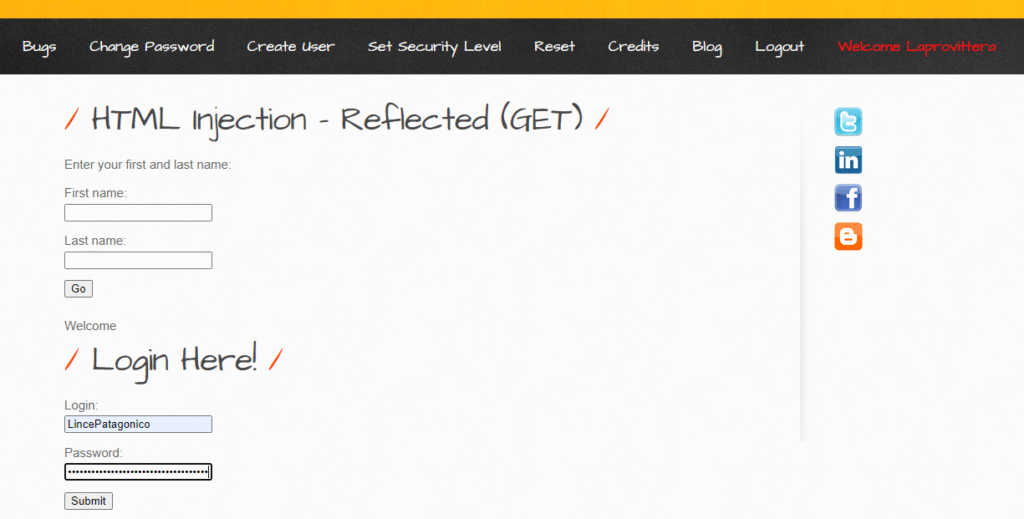 Por ejemplo , un evaluador puede verificar el código fuente del formulario de inicio de sesión y encontrar qué método se está utilizando para ello. Luego, se puede seleccionar el método de inyección HTML apropiado en consecuencia.