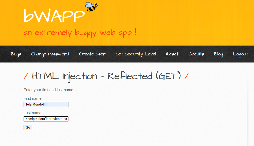 - En un campo de entrada vulnerable, escribe un código HTML que muestre en pantalla el mensaje “Hola, Hacker”.