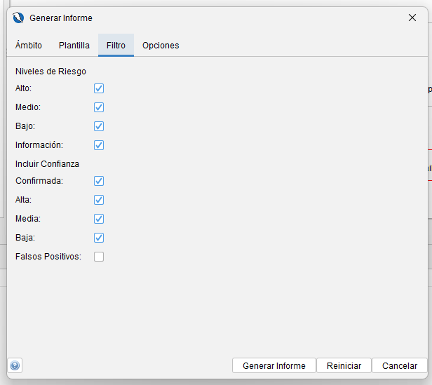 • Incluir confianzas Incluir alertas con las confianzas seleccionadas.