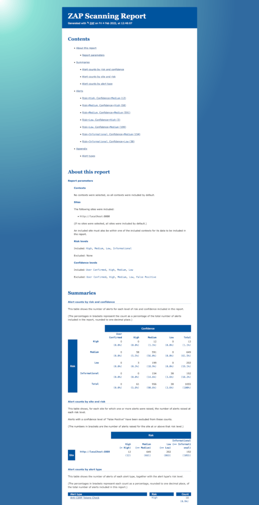 • spider, ajaxSpider, activeScan, passiveScan, soap, openapi, etc.
