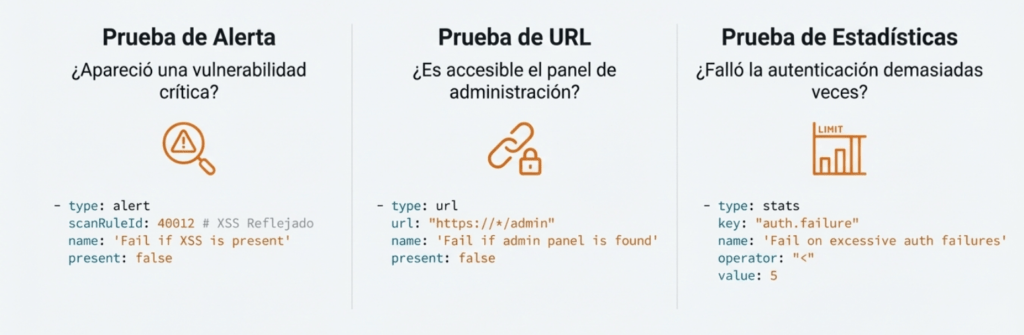 • alert: verifica presencia o ausencia de alertas (requiere scanRuleId)
