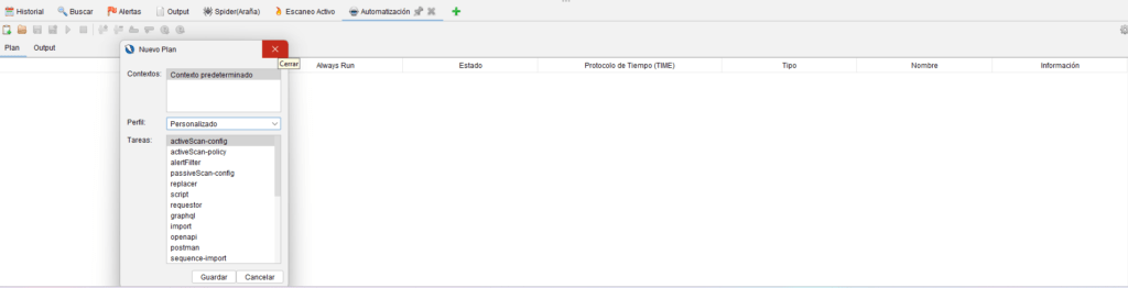 5. Crear plan con Spider + passiveScan + activeScan