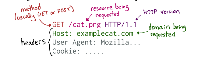 Línea 1: Esta solicitud envía el método GET, solicita la página de inicio con / y le dice al servidor web que estamos usando el protocolo HTTP versión 1.1.