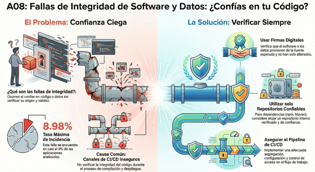 🔸 A08:2025 – Software and Data Integrity Failures (Fallos en la integridad del software o los datos)