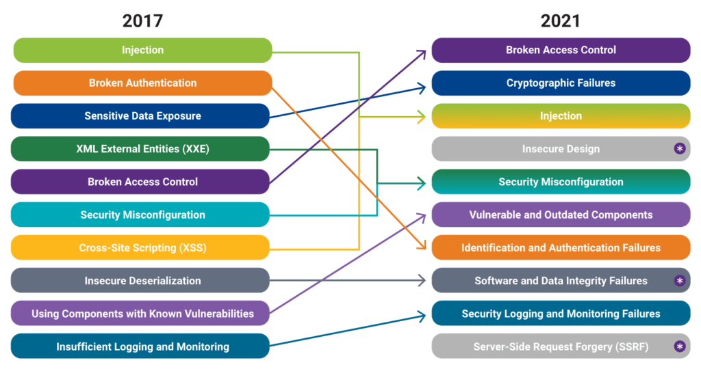 El Top 10 de OWASP es una lista conocida de los diez riesgos de seguridad de aplicaciones web más críticos. Se actualiza periódicamente para garantizar que refleje el panorama actual de amenazas y los desafíos de seguridad en constante evolución que enfrentan las aplicaciones web. La primera versión del Top 10 de OWASP se publicó en 2003. Su objetivo era crear conciencia sobre los riesgos comunes de seguridad de las aplicaciones web y ayudar a los desarrolladores a priorizar los esfuerzos de seguridad. La lista incluía riesgos como secuencias de comandos entre sitios (XSS), inyección de SQL y problemas de gestión de sesiones. Cada lanzamiento del Top 10 de OWASP se basa en las versiones anteriores, mejorando su precisión, relevancia y practicidad.