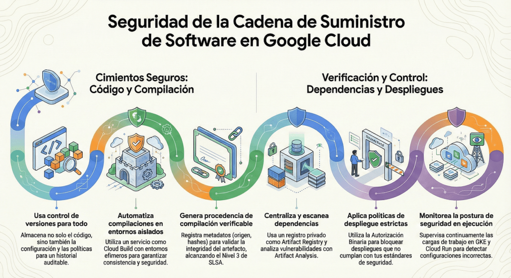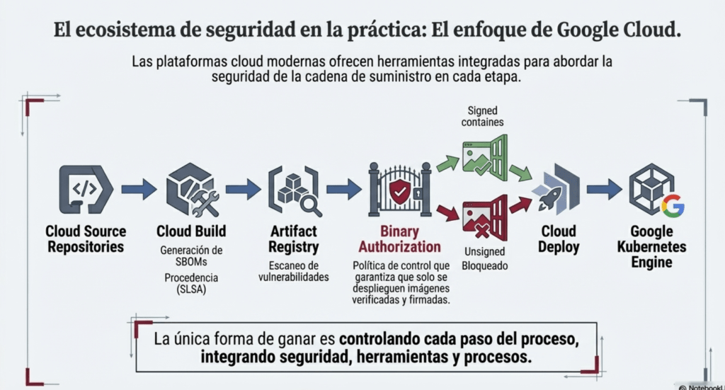 Explica cómo Google Cloud aborda supply chain security: