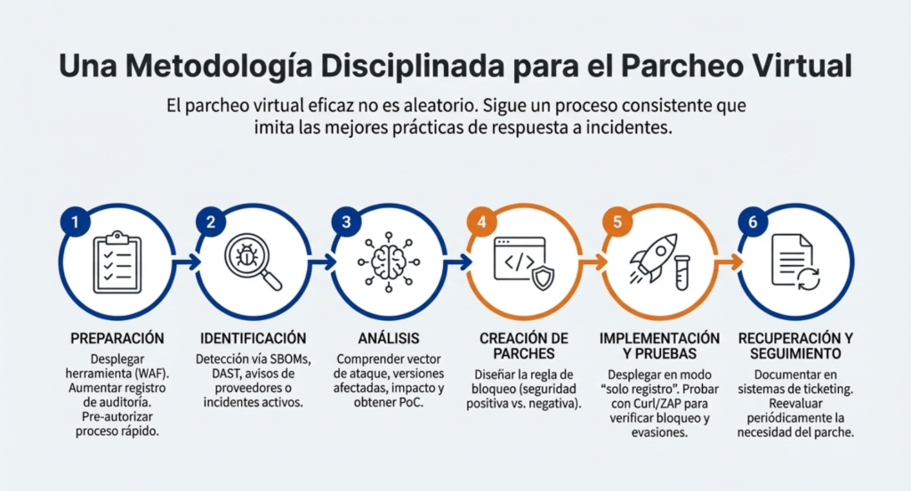 Se explica cómo mitigar vulnerabilidades mediante reglas de WAF sin modificar el código fuente, algo esencial cuando no se puede aplicar un parche real de forma inmediata.