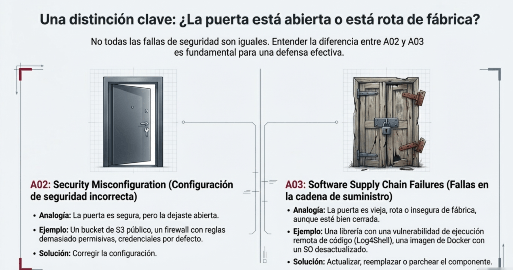 🔹 Y finalmente, cómo diferenciar correctamente entre misconfigurations (A02) y componentes vulnerables (A03).