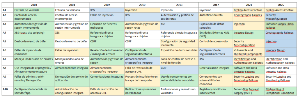 Durante las primeras dos décadas del OWASP Top 10, este tipo de fallas aparecían dispersas en categorías más amplias, como: