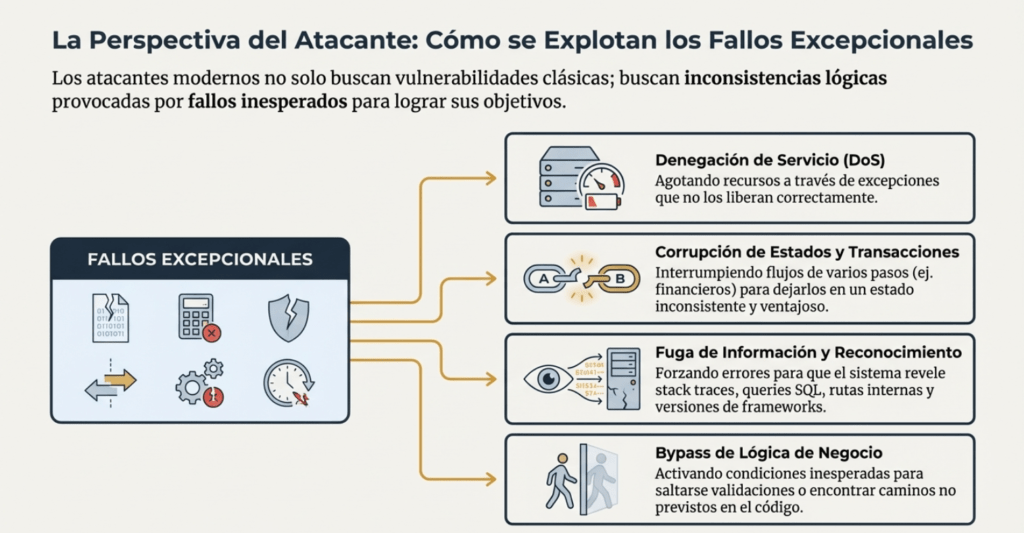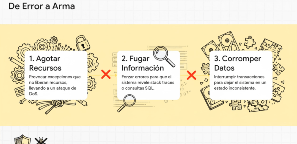 • Cómo estos errores pueden ser aprovechados para DoS, enumeración, fuga de información, corrupción de datos o bypass de controles.