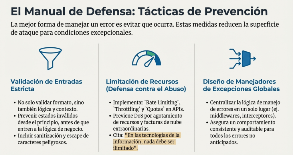 • Cómo validar entradas, limitar recursos, anticipar estados anormales y prevenir errores antes de que ocurran.
