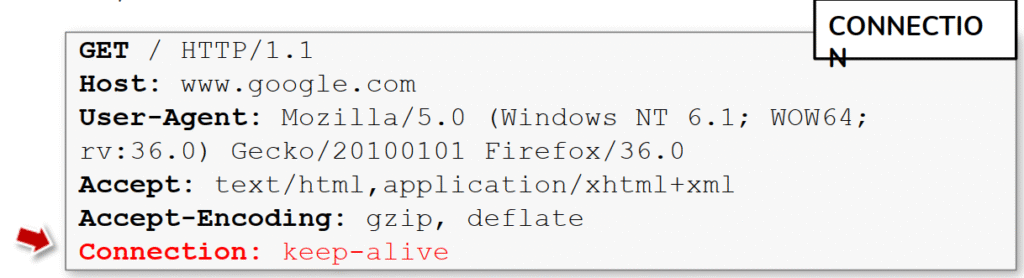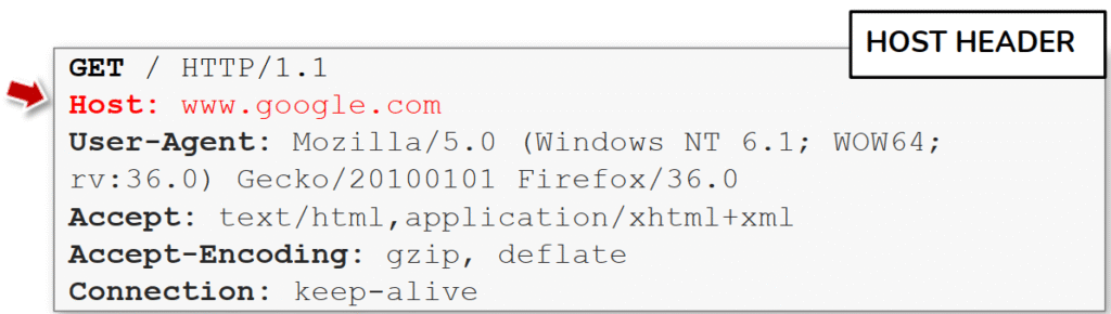 El encabezado Host permite que un servidor web aloje varios sitios web en una sola dirección IP. Nuestro navegador especifica en el encabezado Host qué sitio web le interesa. Después de cada encabezado de solicitud, encontrará su valor correspondiente. En este caso, queremos acceder al host www.google.com. El valor del host + la ruta se combinan para crear la URL completa que está solicitando: la página de inicio de www.google.com/