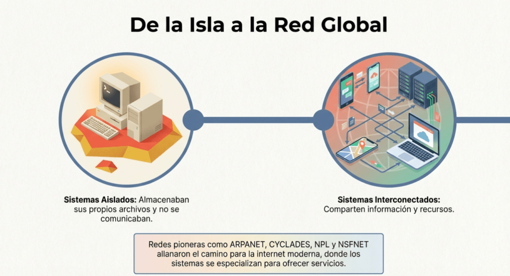Pronto, múltiples organizaciones de todo el mundo idearon la interconexión de estos sistemas para facilitar el intercambio de información y recursos sin importar la distancia. Así nacieron los precursores de internet. Redes como ARPANET, CYCLADES, NPL y NSFNET allanaron el camino para la internet moderna.