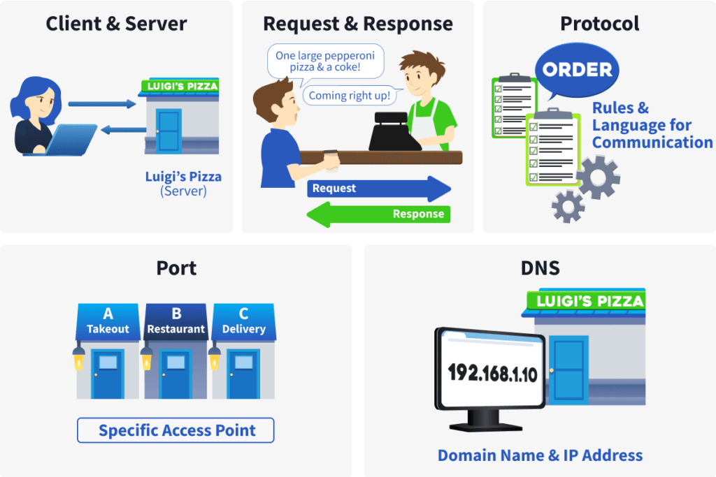 Este parece un proceso estándar y sencillo. Pero no se deje engañar. Como estamos tan acostumbrados a pedir pizza, lo hemos interiorizado. Analicemos cada paso con más detalle y relacionémoslo con la interacción de los sistemas informáticos.