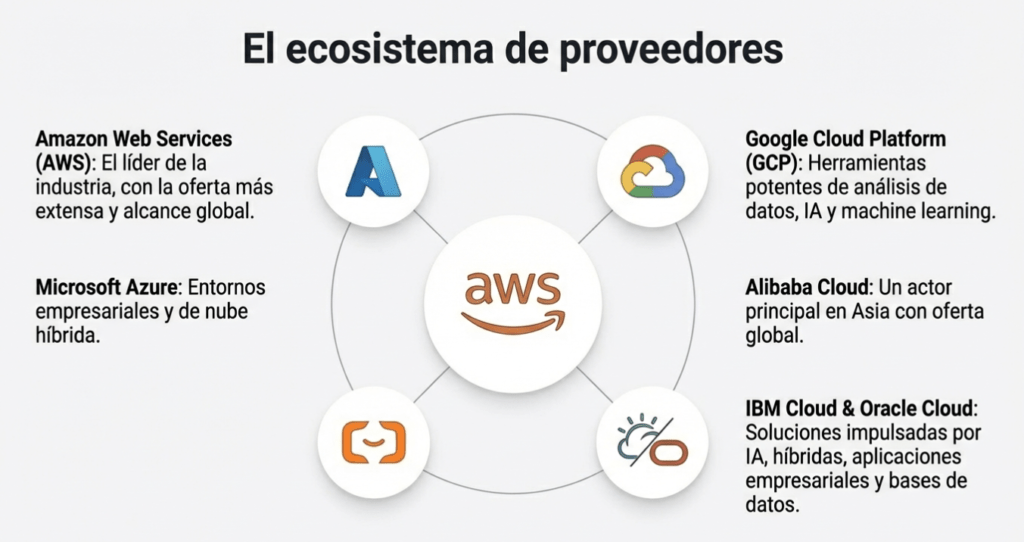 - Alibaba Cloud: un actor importante en Asia, que ofrece servicios de nube competitivos a nivel mundial.