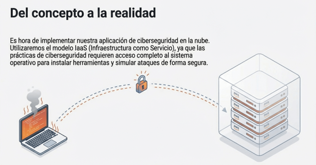 | IaaS (Infraestructura como Servicio) | Modelo de Servicio | Alquiler de recursos informáticos básicos como servidores virtuales, almacenamiento y redes. | Prácticas de ciberseguridad que requieren acceso total al sistema operativo para instalar herramientas. | Flexibilidad, control sobre el sistema operativo y escalabilidad sin gestionar hardware físico. | Alto: El usuario gestiona el sistema operativo, middleware, datos y aplicaciones. |