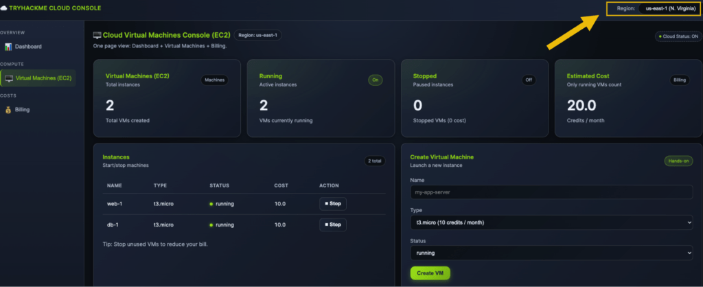 Hasta ahora, has aprendido qué es la computación en la nube y por qué las empresas la usan. ¡Ahora es el momento de ver esas ideas en acción implementando un entorno de nube para lanzar tu capacitación en aplicaciones de ciberseguridad! En este ejercicio, utilizarás una interfaz en la nube similar a la plataforma AWS . El objetivo no es memorizar botones, sino comprender cómo se crean y gestionan fácilmente los recursos en la nube en un escenario real