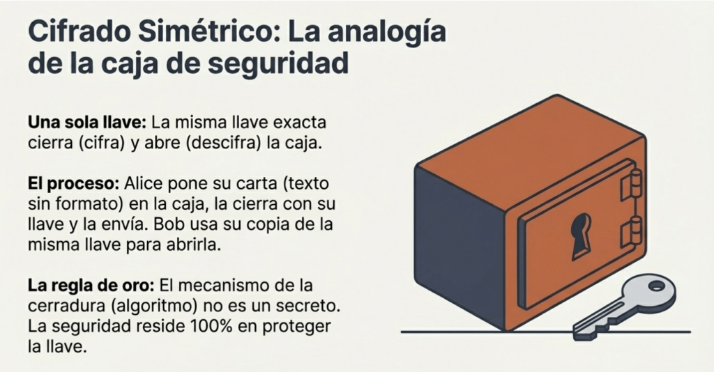 En pocas palabras, eso es el cifrado simétrico : una llave cierra la caja y la misma llave la abre.