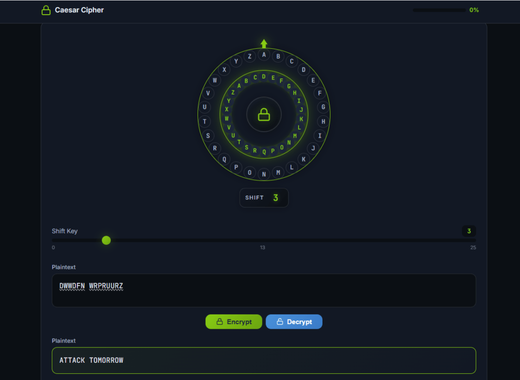 La cuestión es la siguiente: el cifrado César no es seguro y nunca se utiliza en sistemas reales . Es demasiado fácil comprometer y descifrar mensajes. Lo usamos aquí simplemente porque es fácil de entender y muestra cómo funcionan las claves y los algoritmos en conjunto.
