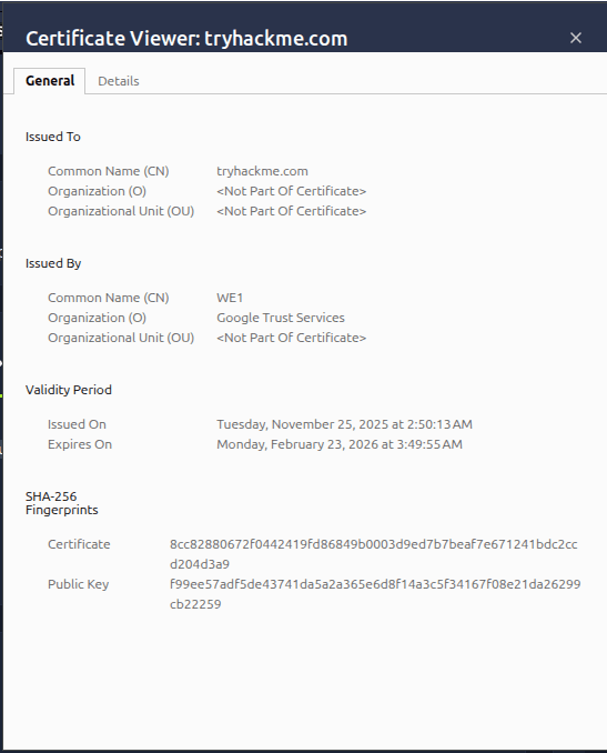 1. Visita cualquier sitio HTTPS (prueba https://www.tryhackme.com).