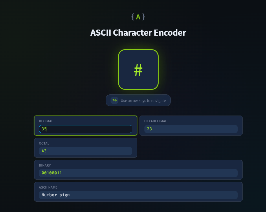 ¿Cuál es el caracter que tiene el código ASCII de 35 en decimal?