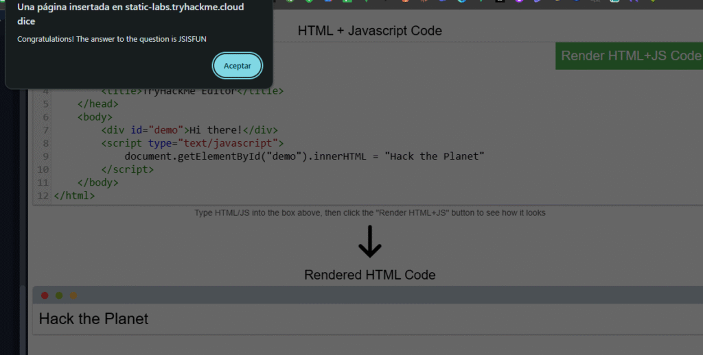 Ejercicio 5 — JavaScript para cambiar demo a Hack the Planet