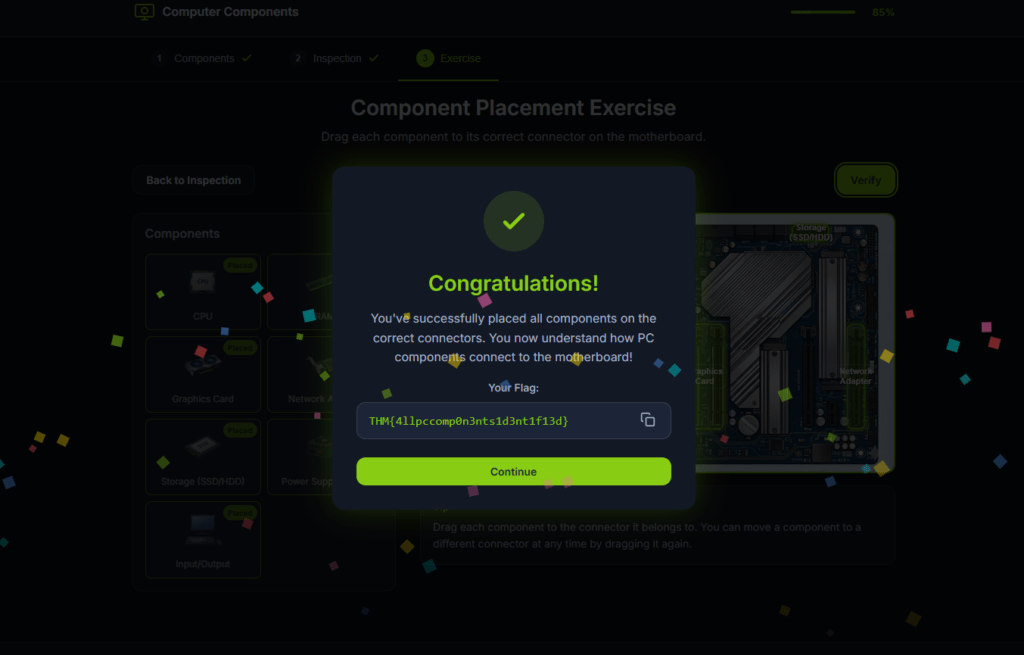 • Después de completar esta sala, podrás reconocer y comprender las funciones de varios componentes informáticos.