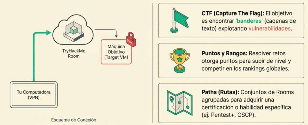 No te equivoques: la ciberseguridad no se domina solo leyendo manuales de mil páginas, sino ensuciándose las manos en entornos donde la teoría se estrella contra la realidad. Aquí es donde aparece TryHackMe, el campo de entrenamiento definitivo que ha transformado el aprendizaje técnico en un ecosistema de «aulas virtuales» (Rooms). En este espacio, no solo recibes teoría; recibes una máquina virtual en la nube y el permiso legal para intentar romperla. Es un laboratorio de experimentación constante donde el error no es un fracaso, sino el paso previo a la maestría.