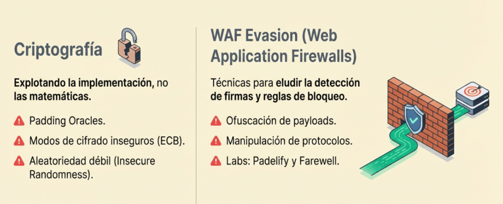 Una vez superado esto, el camino te lleva hacia el Red Teaming, donde los retos suben de tono: aprenderás técnicas avanzadas de evasión de defensas, como el Bypassing de WAFs (Web Application Firewalls) y ataques de HTTP Request Smuggling.