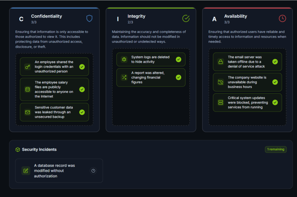 A estas alturas, ya conoce la Tríada CIA ( Confidencialidad , Integridad y Disponibilidad ) y cómo cada uno de sus pilares desempeña su papel en la protección de la información digital. Sin embargo, la CIA no es solo un conjunto de definiciones, sino una mentalidad de seguridad de los profesionales de la ciberseguridad. Cuando ocurre un incidente de seguridad, a menudo se explica en función de lo afectado. Los profesionales de seguridad generalmente se plantean